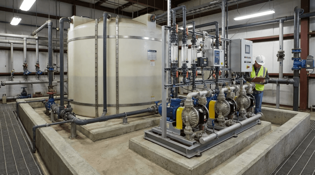 1. INTRODUCTION In the architecture of municipal and industrial water and wastewater treatment, chemical feed and storage systems function as the critical control points for process efficacy and regulatory compliance. Unlike passive infrastructure, these systems are dynamic, requiring precise manipulation of fluid chemistry to achieve coagulation, flocculation, disinfection, pH adjustment, and odor control. […]