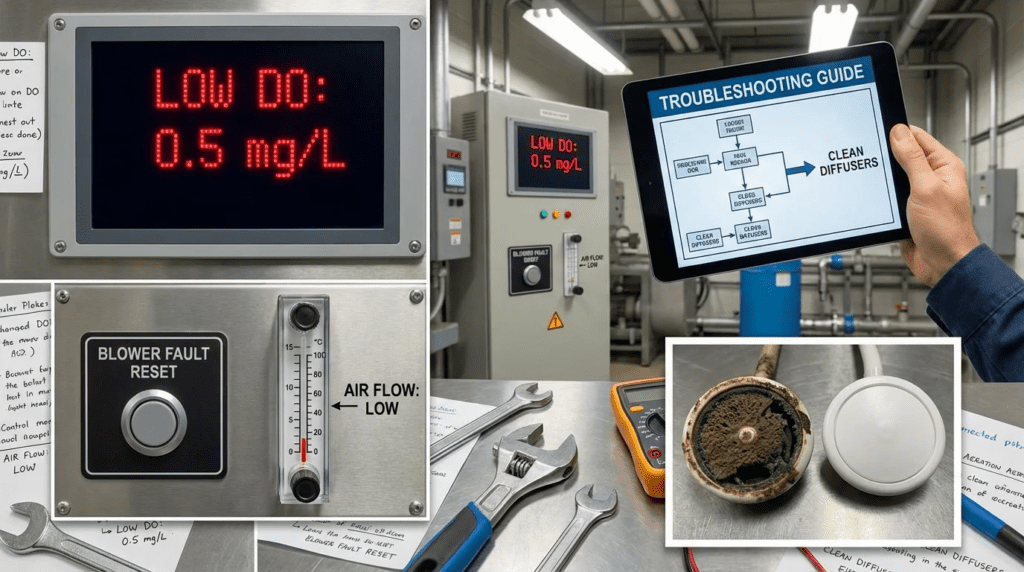 INTRODUCTION There is perhaps no scenario more frustrating for a wastewater plant operator or design engineer than an aeration basin that is visually boiling with air, blowers running at 100% capacity, yet the dissolved oxygen (DO) concentration refuses to climb above 0.5 mg/L. Aeration Troubleshooting: Low DO is a complex, multi-disciplinary challenge that forces utility […]